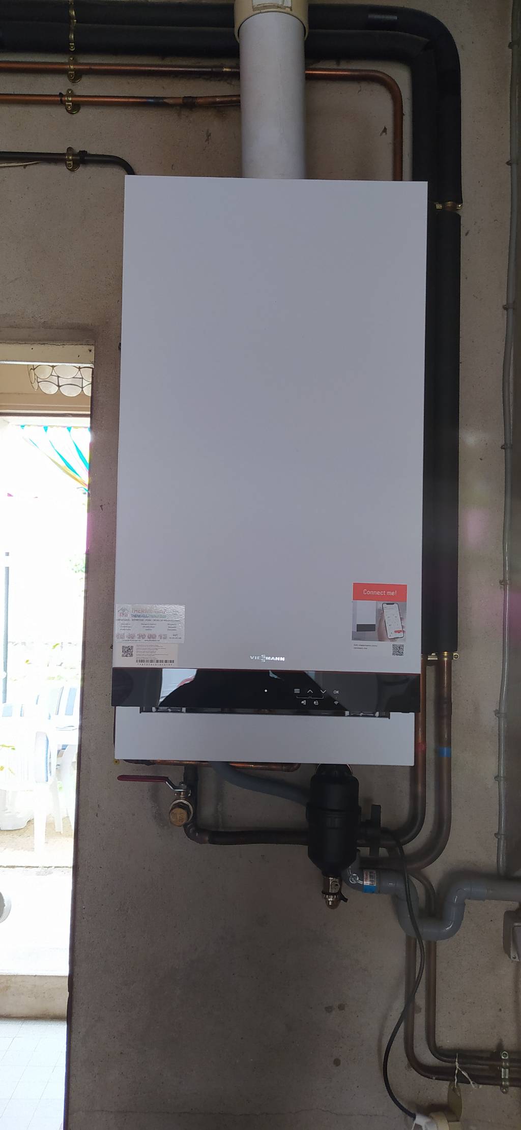 Dans la commune de Royan (17), remplacement d'une chaudière à condensation de marque Saunier Duval par une chaudière à condensation Viessmann.
