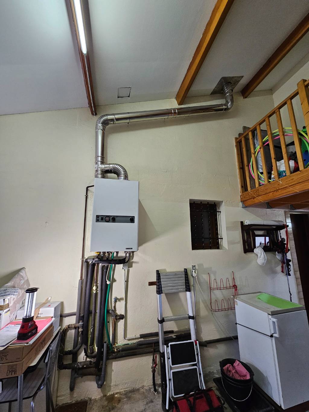 L'avantage de cette chaudière est son faible encombrement, sa possibilité de la connecter à internet pour nous en télé-maintenance ou pour nos clients pour gérer à distance le chauffage.