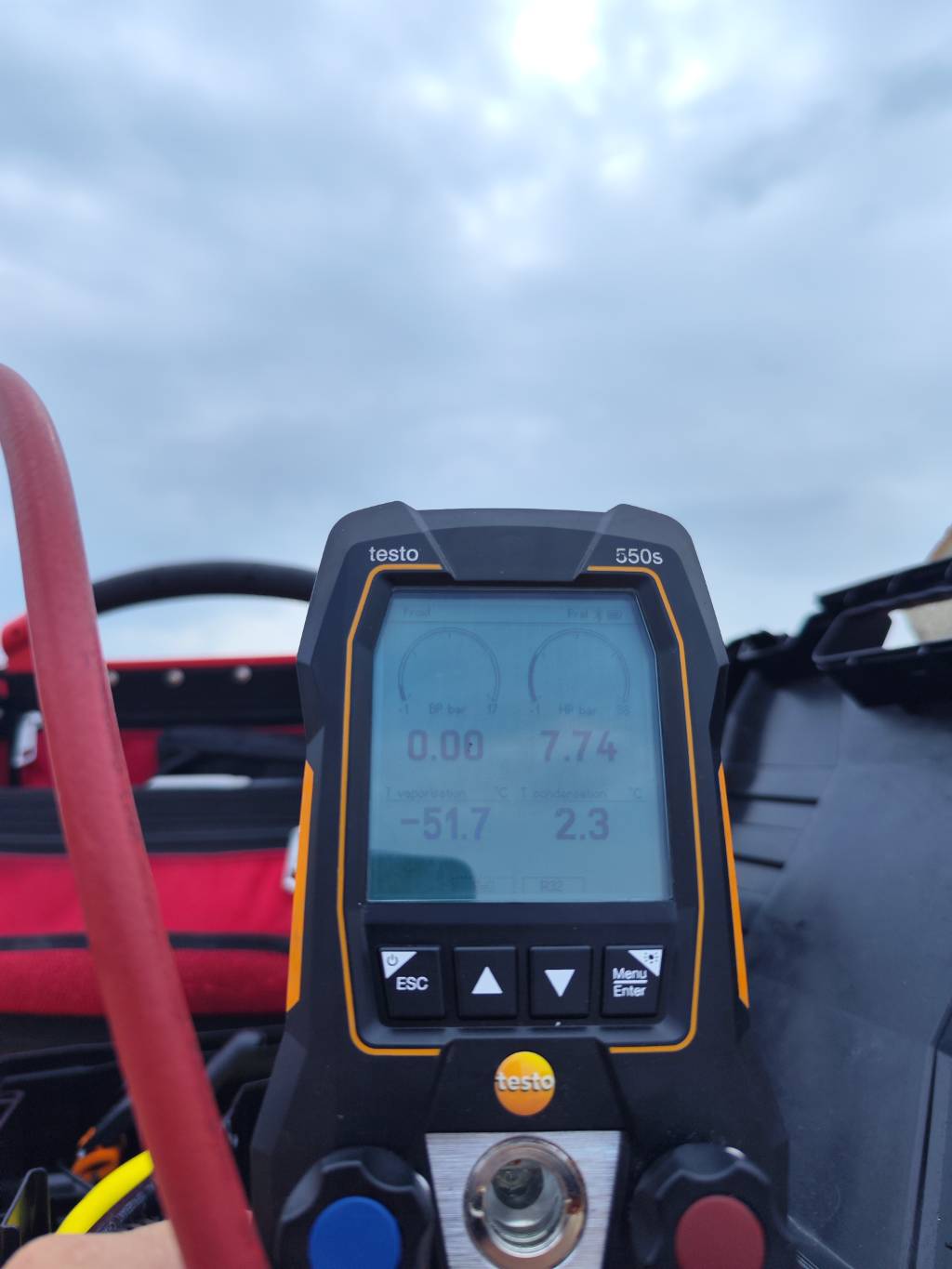 Prise de pression et des températures, un manque de fluide frigorifique est présent.