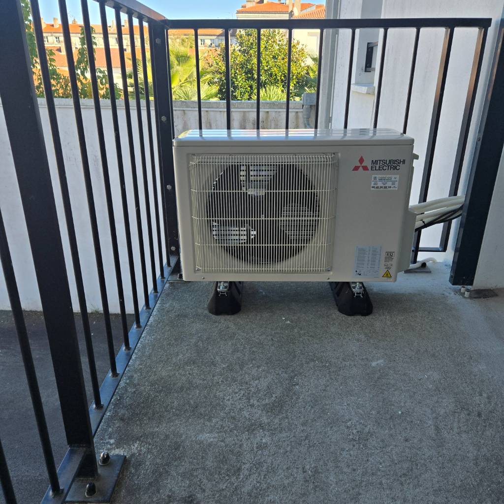 Le chantier illustre l'installation réussie d'un système de climatisation réversible de type Split du fabricant Mitsubishi Electric, une marque reconnue pour la qualité de ses équipements. Ce type d'installation permet à la fois de climatiser en été et de chauffer en hiver (pompe à chaleur air-air), offrant un confort thermique optimal toute l'année.
