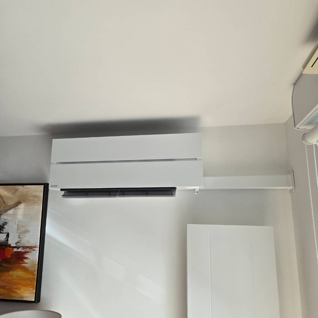 - Modèle et Esthétique : Il s'agit d'un modèle au design moderne et épuré, de couleur blanche, qui s'intègre bien à l'environnement intérieur. Le modèle semble être de la gamme Premium Inverter de Mitsubishi Electric (ou similaire), caractérisé par sa forme allongée et son panneau frontal.