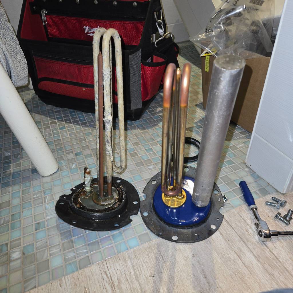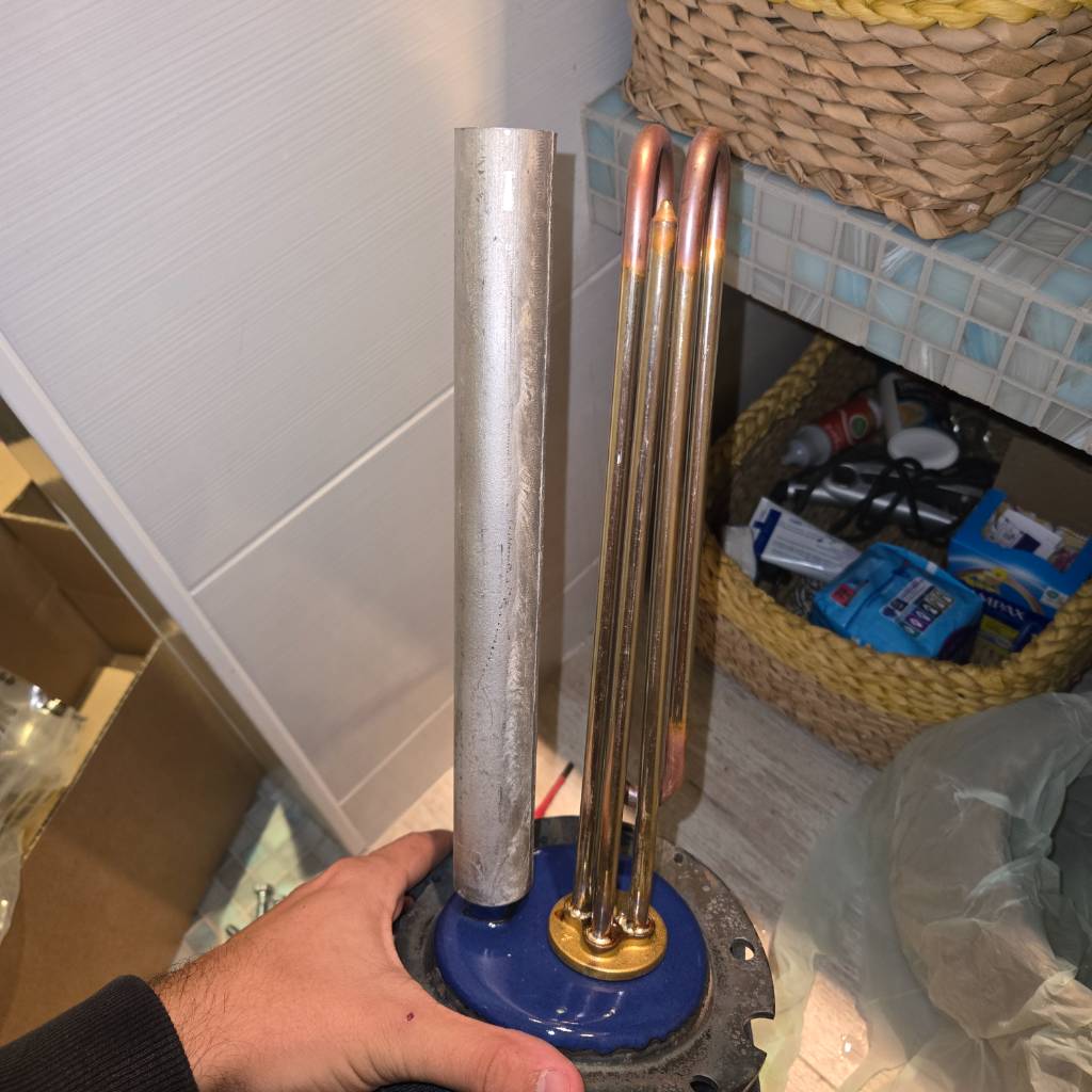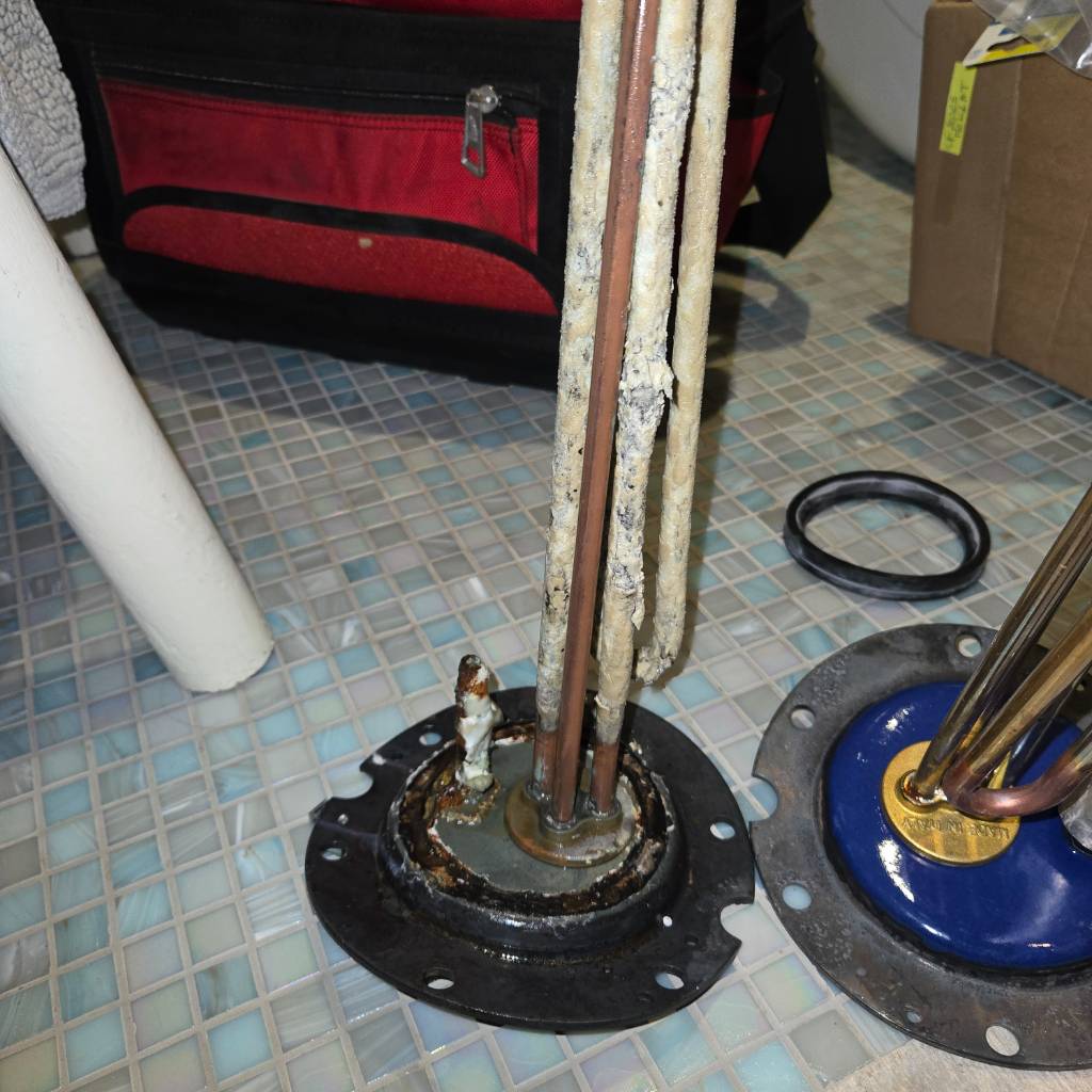 Sur la photos nous voyons que l'anode du chauffe eau, qui, pour rappel se contrôle tout les deux ans, est HS et à provoqué la destruction de la résistance électrique.