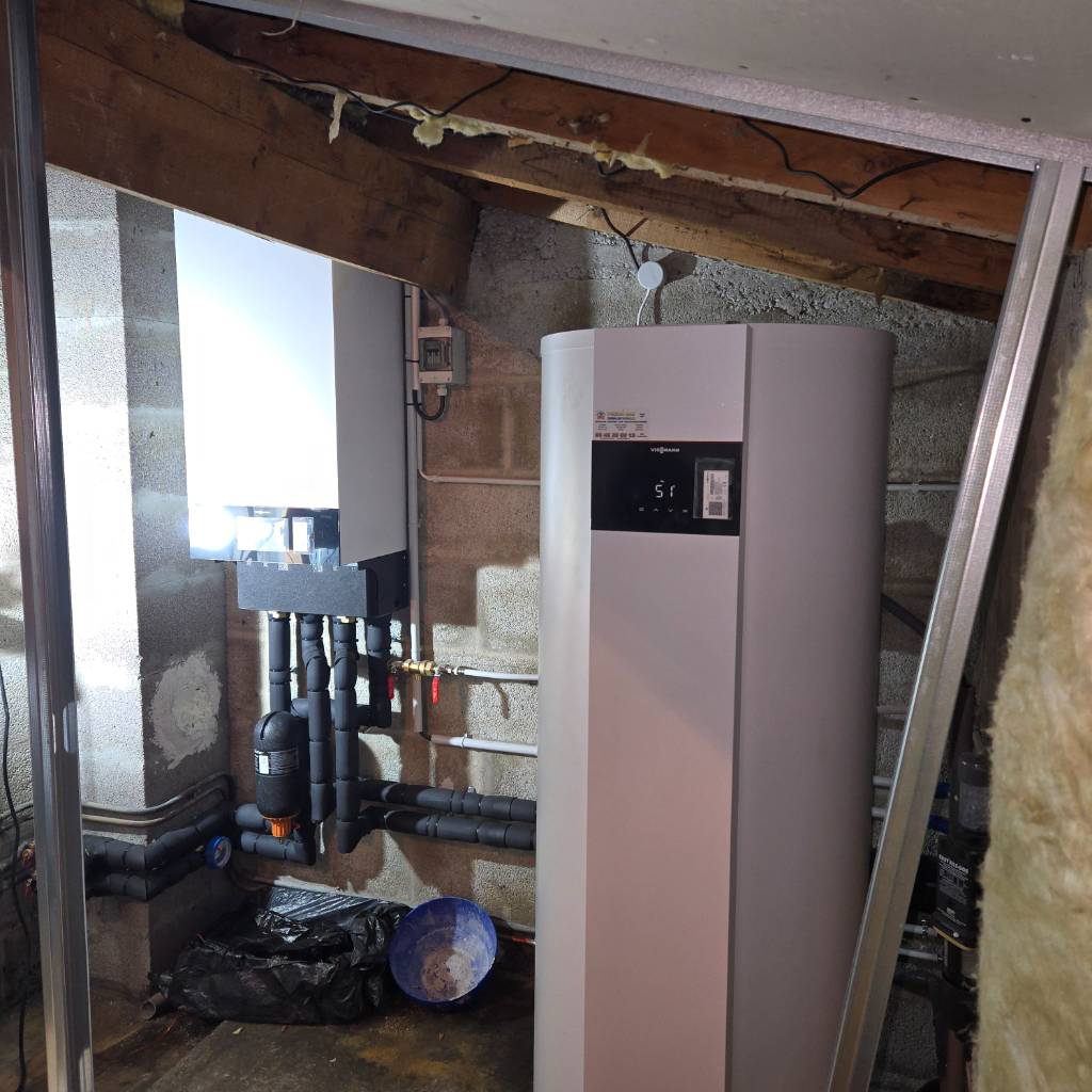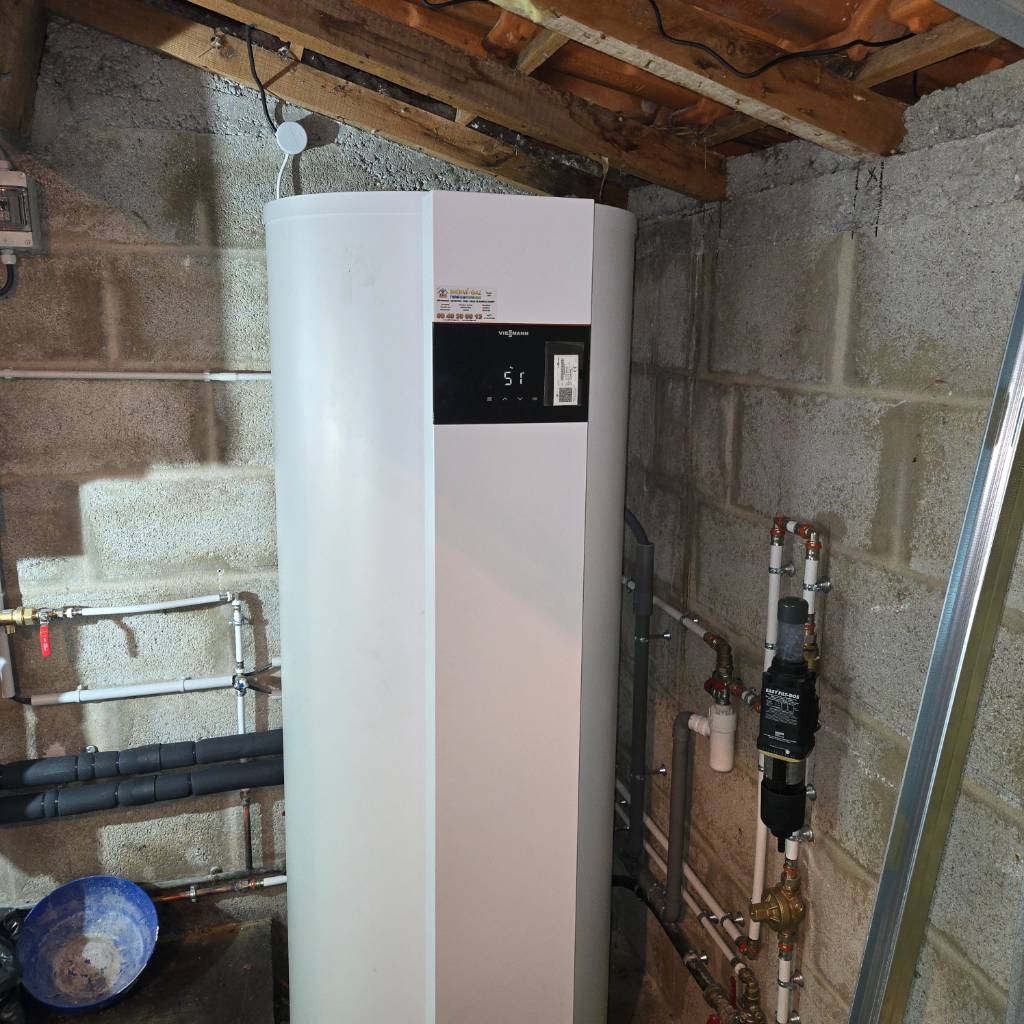 Le client dispose désormais d'une solution Viessmann haute performance sur l'ensemble de ses besoins (chauffage et ECS). Le Vitocal 262-A assure de l'eau chaude toute l'année à un coût minimum, confirmant notre réputation pour les solutions énergétiques durables.