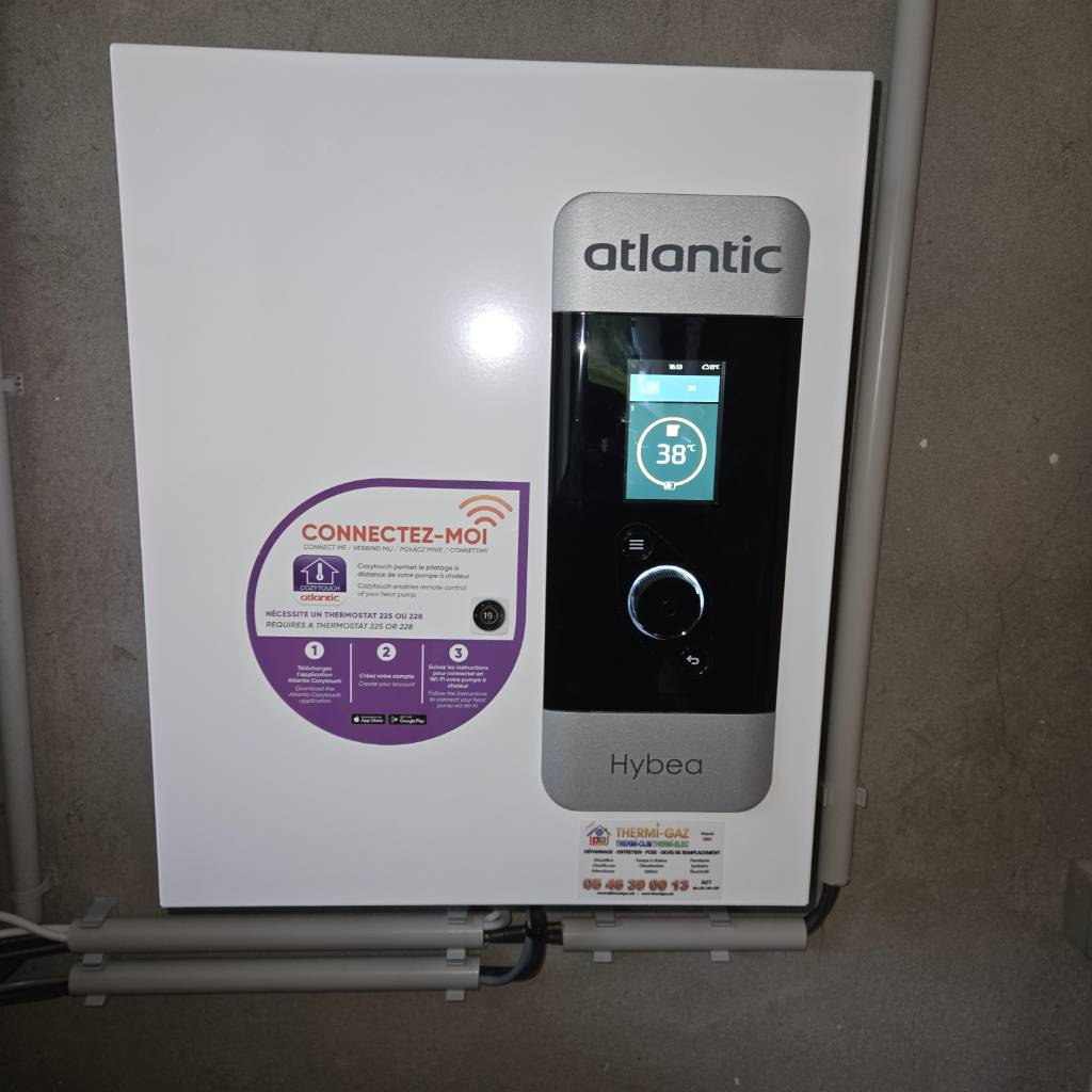 Intervention de nos expert spécialiste de la pompe à chaleur pour une installation de pompe à chaleur hybride gaz Atlantic en remplacement d'une chaudière gaz Saunier Duval.