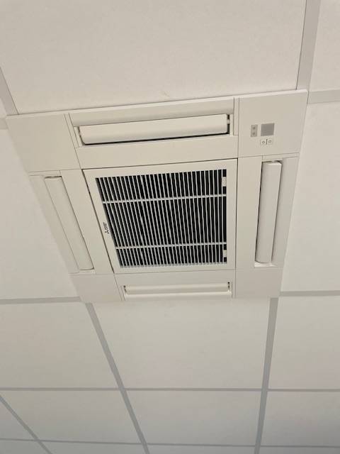 - Pose d'une cassette 4 voies Mitsubishi Electric avec une façade pour la filtration des fines particules afin d'éviter qu'ils respirent un air trop saturé.