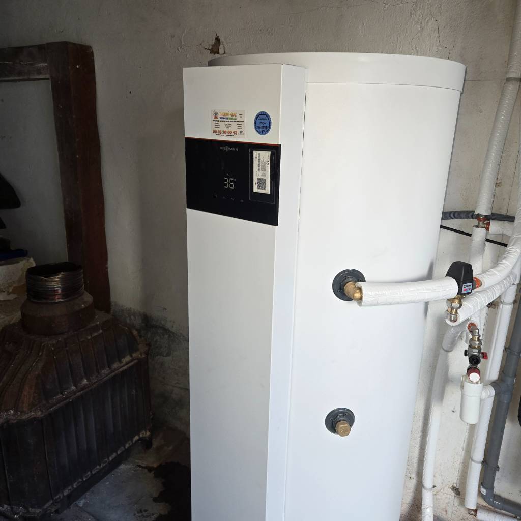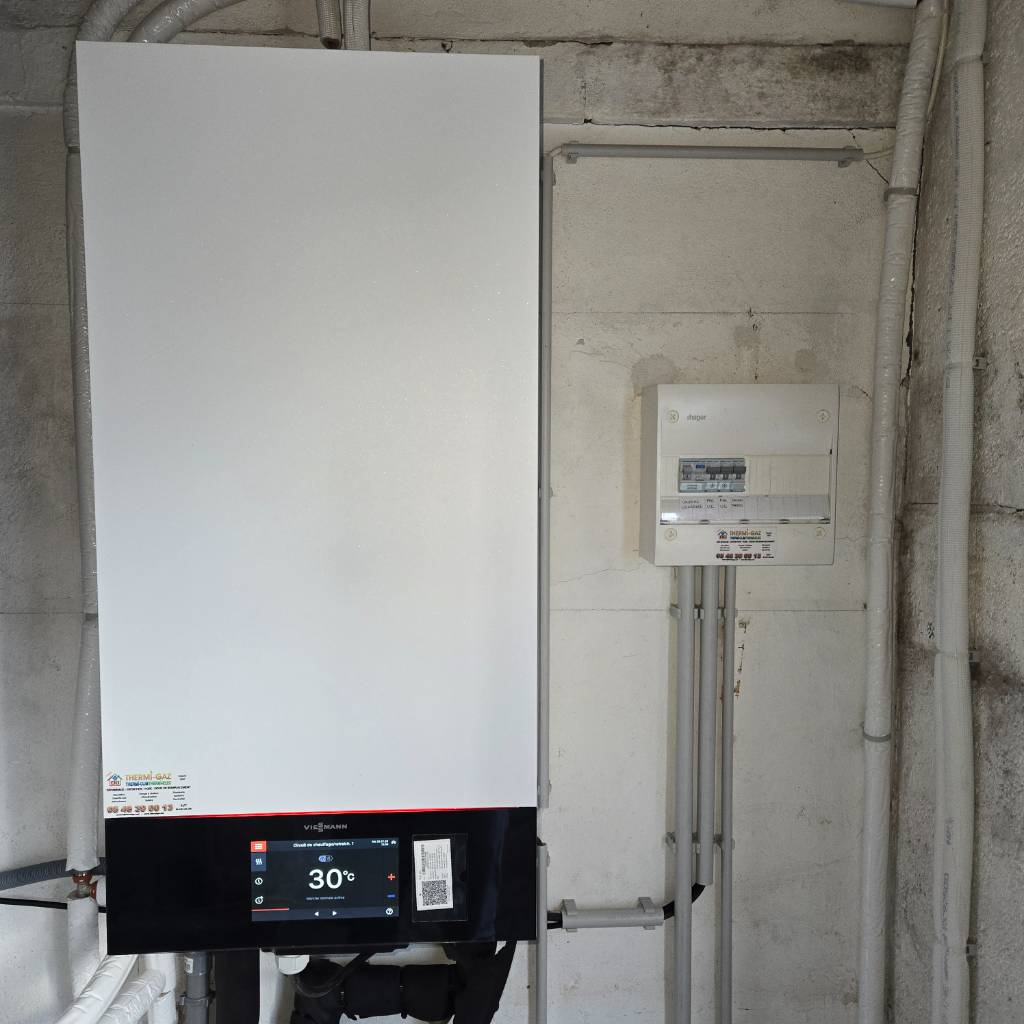 L'équipe de Thermi-Gaz vient de terminer une installation technique de pointe à Rochefort. Nous avons mis en place une solution complète de chauffage et de production d'eau chaude sanitaire en couplant deux équipements phares de chez Viessmann.