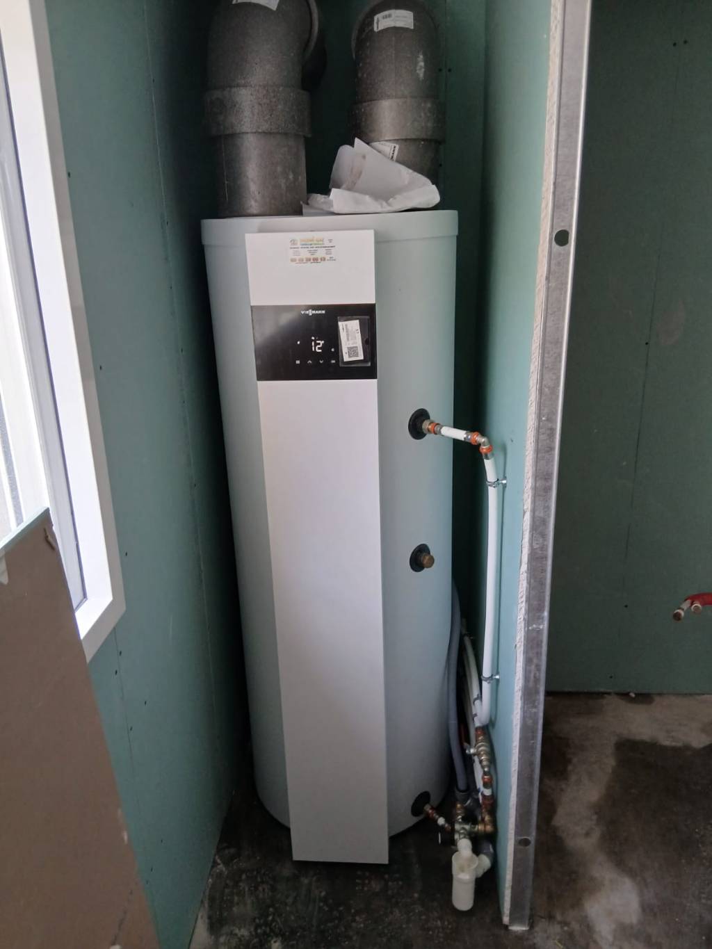Nouvelle étape clé dans ce projet de rénovation globale ! Nous avons remplacé un ancien cumulus électrique, aussi gourmand qu'énergivore, par un système de pointe : un chauffe-eau thermodynamique Viessmann.