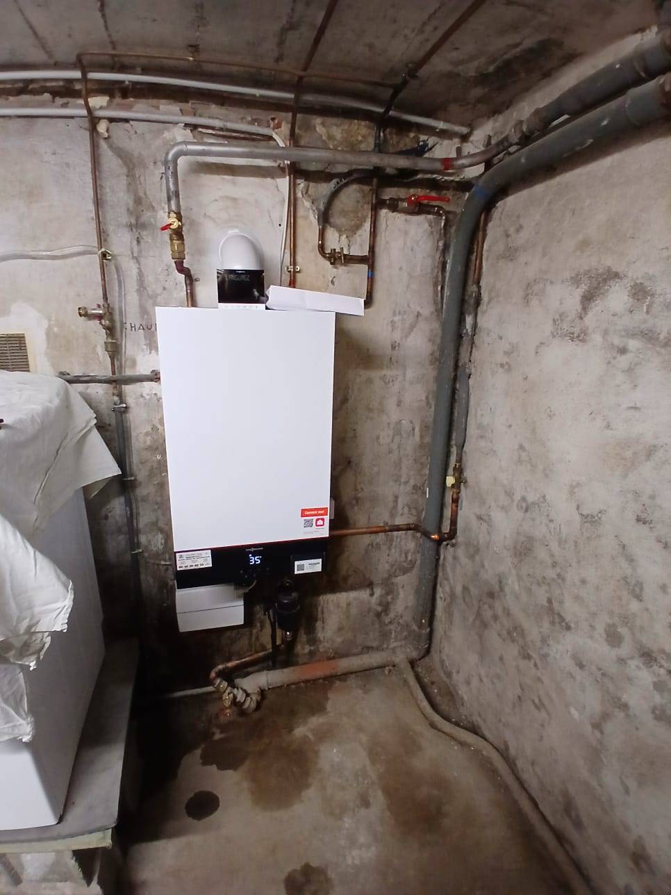- Pose de la chaudière Viessmann avec raccordement des condensats et mise en service technique.