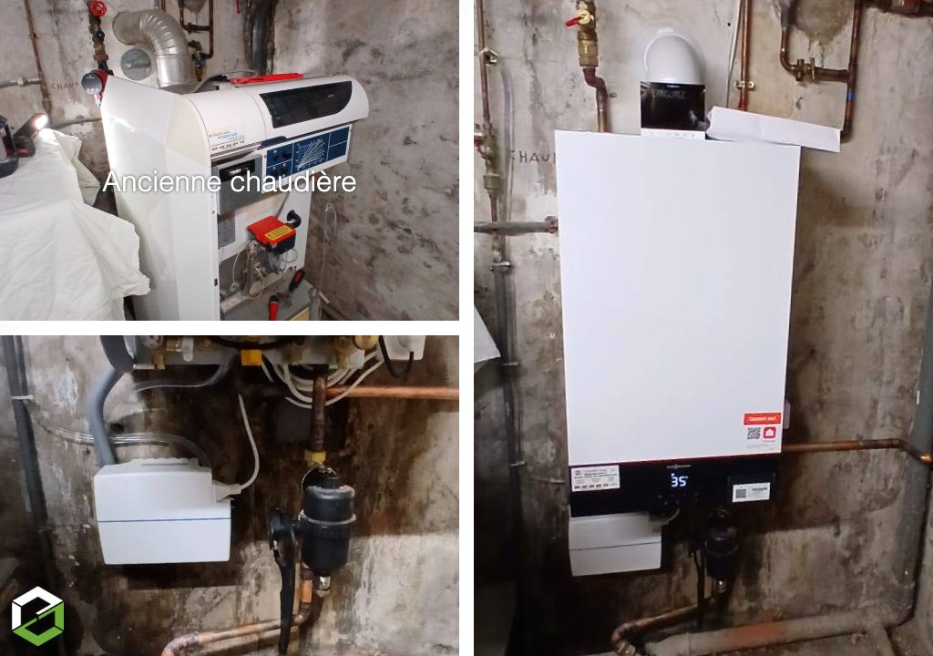 - Nettoyage du réseau de chauffage (désembouage) pour garantir l'efficacité optimale du nouveau corps de chauffe.